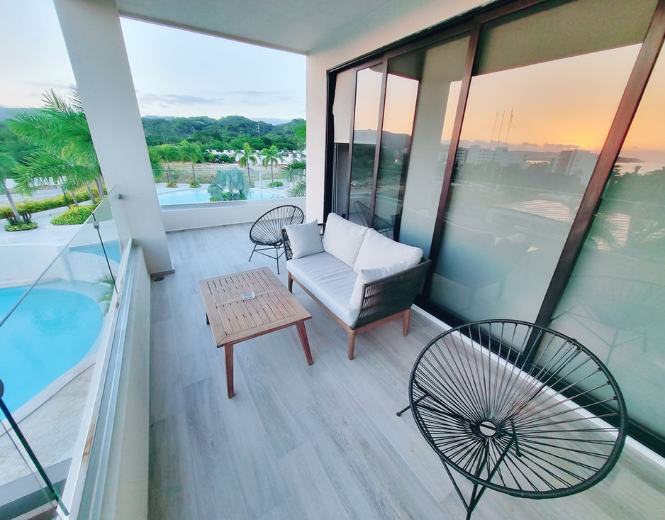 Welcome to the newly built two-bedroom vacation condo located on the third floor of the luxurious Quadrant community in Bucerias, Nayarit. This resort-style condominium community is situated along the Tepic-Perto Vallarta highway in Banderas Bay and sits on a hill that offers spectacular views of the ocean, community gardens, and surrounding amenities.